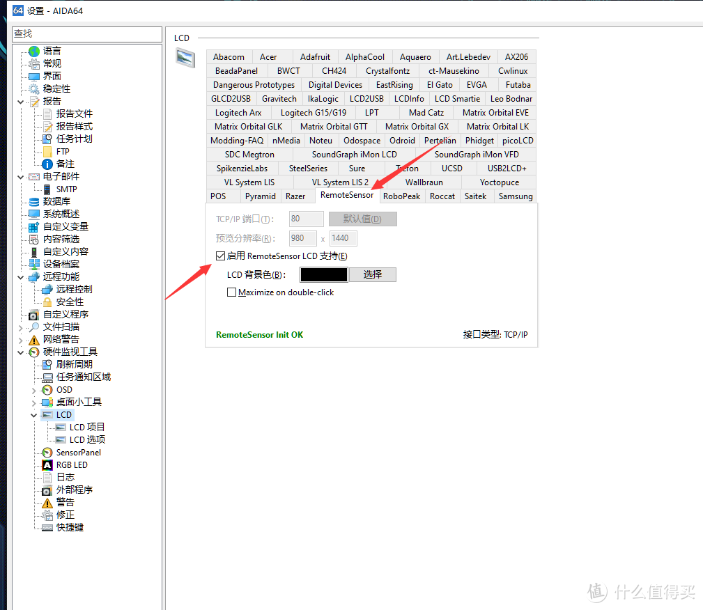 打开AIDA64设置,启动LCD