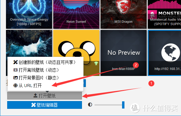 - 在管理器界面点击左下角打开壁纸 ——从URL打开