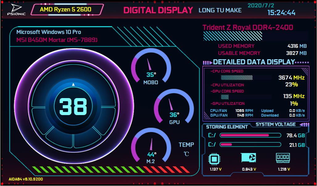1024X600 横屏 Vee Default_1024X600_Aida64_SensorPanel模板 SensorPanel模板,支持LCD项目,没有字体,需要字体的前往学习下载安装... 2 年前