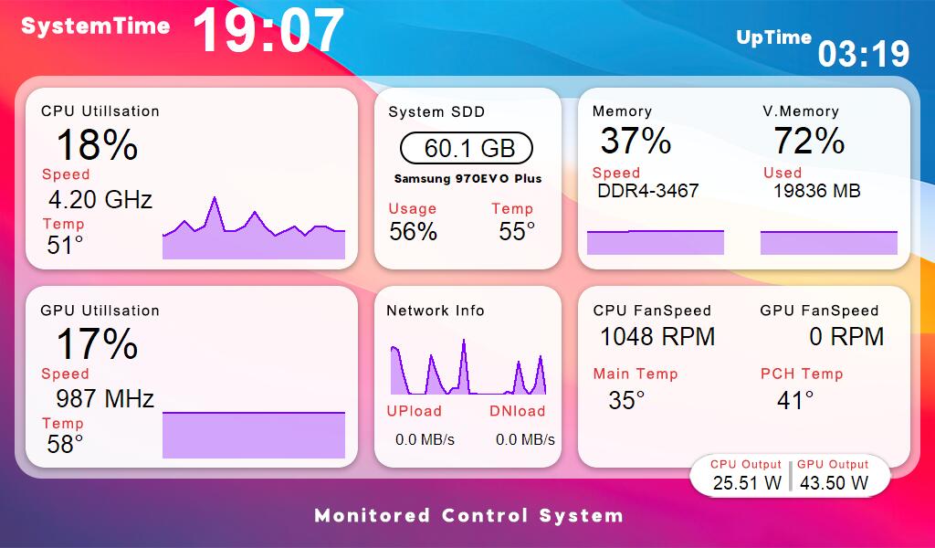 1920X1080 横屏 William Hunter NZXT-Customised-V2_1920X1080_Aida64_SensorPanel模板 一个我非常喜欢的aida64SensorPanel模板,不仅大气,又简洁。 2 年前