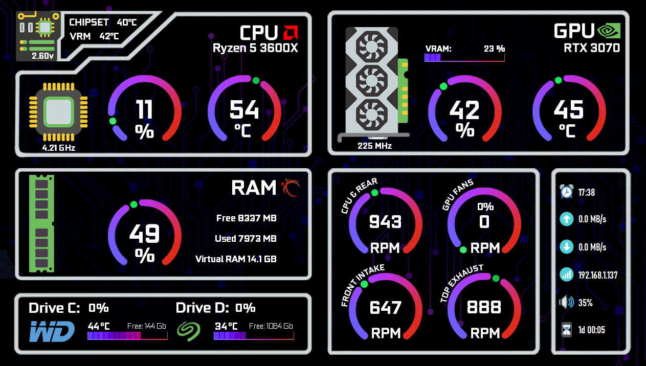 五颜六色第二款Aida64_SensorPanel模板 声明:本站所有文章,如无特殊说明或标注,均为本站原创发布。任何个人或组织,在未征得本站同意时,禁止复制、盗用、采集、发布本站内容到任何网站、书籍等各类媒体平台。如若本站内容侵犯了原著者的合法权益,可联系我们进行处理。