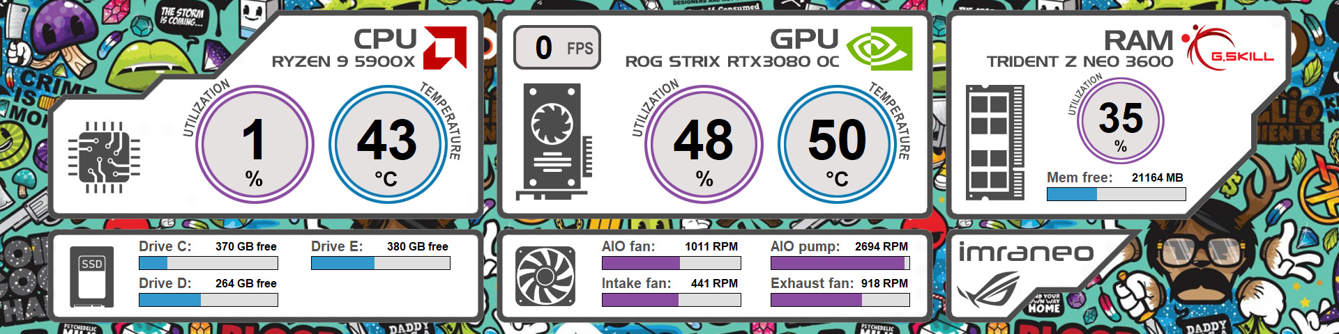 Aida64的宽屏SensorPanel模板 声明:本站所有文章,如无特殊说明或标注,均为本站原创发布。任何个人或组织,在未征得本站同意时,禁止复制、盗用、采集、发布本站内容到任何网站、书籍等各类媒体平台。如若本站内容侵犯了原著者的合法权益,可联系我们进行处理。