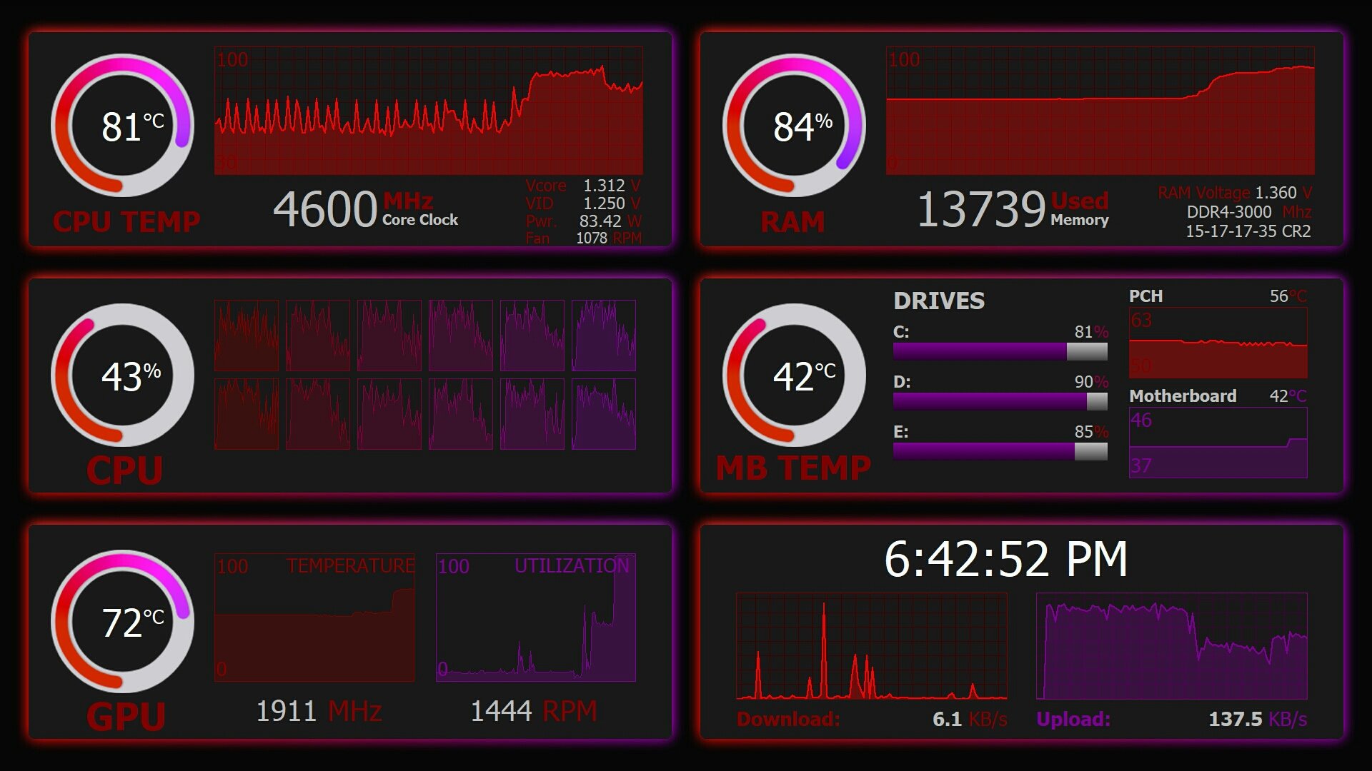 Aida64的紫色SensorPanel模板 声明:本站所有文章,如无特殊说明或标注,均为本站原创发布。任何个人或组织,在未征得本站同意时,禁止复制、盗用、采集、发布本站内容到任何网站、书籍等各类媒体平台。如若本站内容侵犯了原著者的合法权益,可联系我们进行处理。