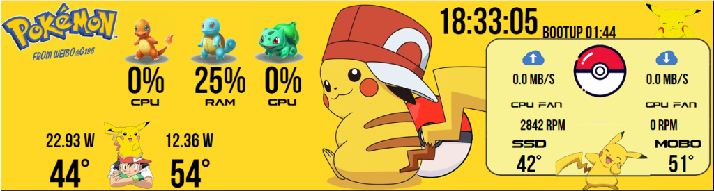 Aida64的Pokemon 皮卡丘Sensorpanel模板 声明:本站所有文章,如无特殊说明或标注,均为本站原创发布。任何个人或组织,在未征得本站同意时,禁止复制、盗用、采集、发布本站内容到任何网站、书籍等各类媒体平台。如若本站内容侵犯了原著者的合法权益,可联系我们进行处理。