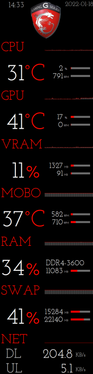 800X480 横屏 Operbico Tuf Yellow Black_800X480_Aida64_SensorPanel模板 需要轻微修改一些参数就可以使用了,是一个不错的模板。参数修改地址:Aida64教... 2 年前